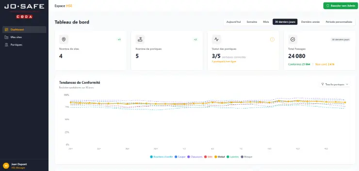 Contrôle intégral en une seconde de tous les EPI requis, réponse instantanée sur la conformité, la présence et le bon positionnement de chaque équipement obligatoire.